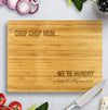 Made from quality bamboo, our cutting boards are available in Medium (20x28cm) and Large (30x40cm) sizes. The thickness of each board is 18mm. If you plan to use your board as a cutting/chopping board it is recommended that you cut on the back as this will preserve the look of the personalised side.